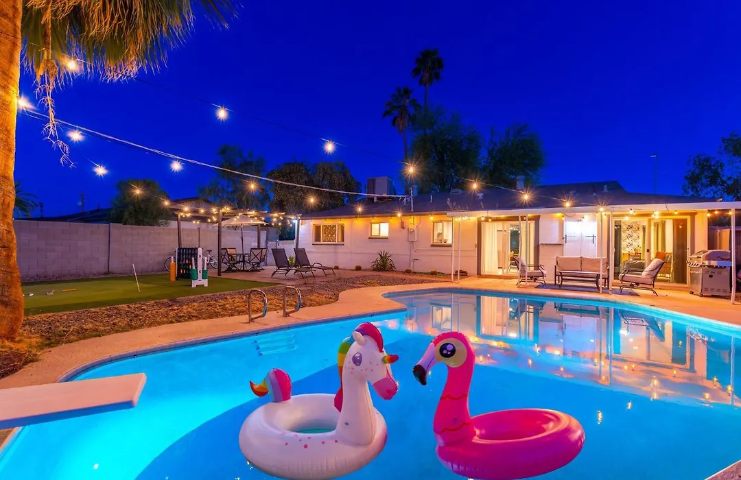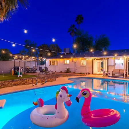 La villa se encuentra a 5 km del aeropuerto Internacional de Phoenix-Sky Harbor y a 7 km de puntos de interés cultural como el Centro de Arte Shemer. El Zoológico de Phoenix se ubica a unos 10 minutos en coche de esta casa de vacaciones y el Casino Arizona está a unos 15 minutos en coche. La Villa Sunshine Oasis! Heated Pool, Mini Golf, Sleeps 12 ofrece a los entusiastas del deporte la posibilidad de descubrir el Estadio Sun Devil, situado a unos 4 km.